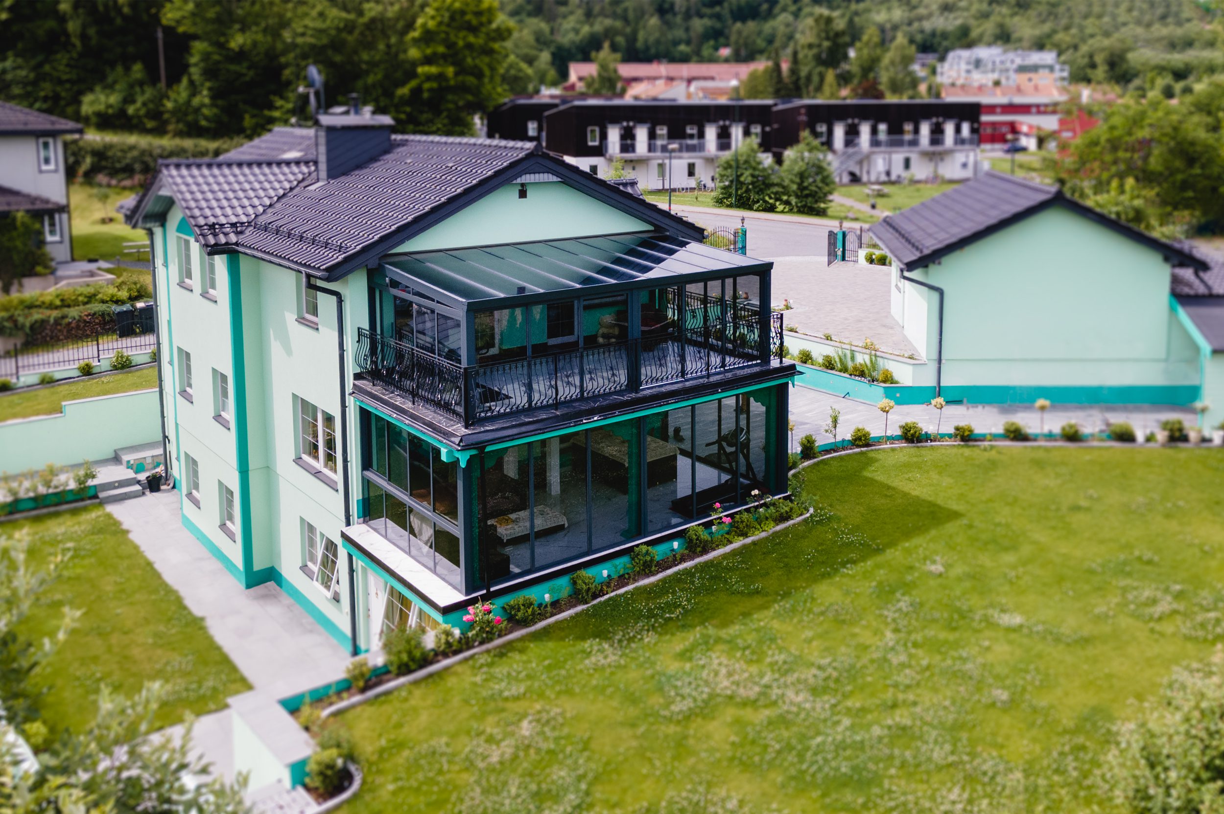 Konstruksjonen er utviklet med fokus på kvalitet, fleksibilitet og lang levetid. Store glassflater gir rikelig med lys og nærhet til naturen, samtidig som løsningen skjermer mot vind, regn og kjøligere vær. Resultatet er et behagelig uterom som kan brukes både til hverdag og sosiale anledninger.