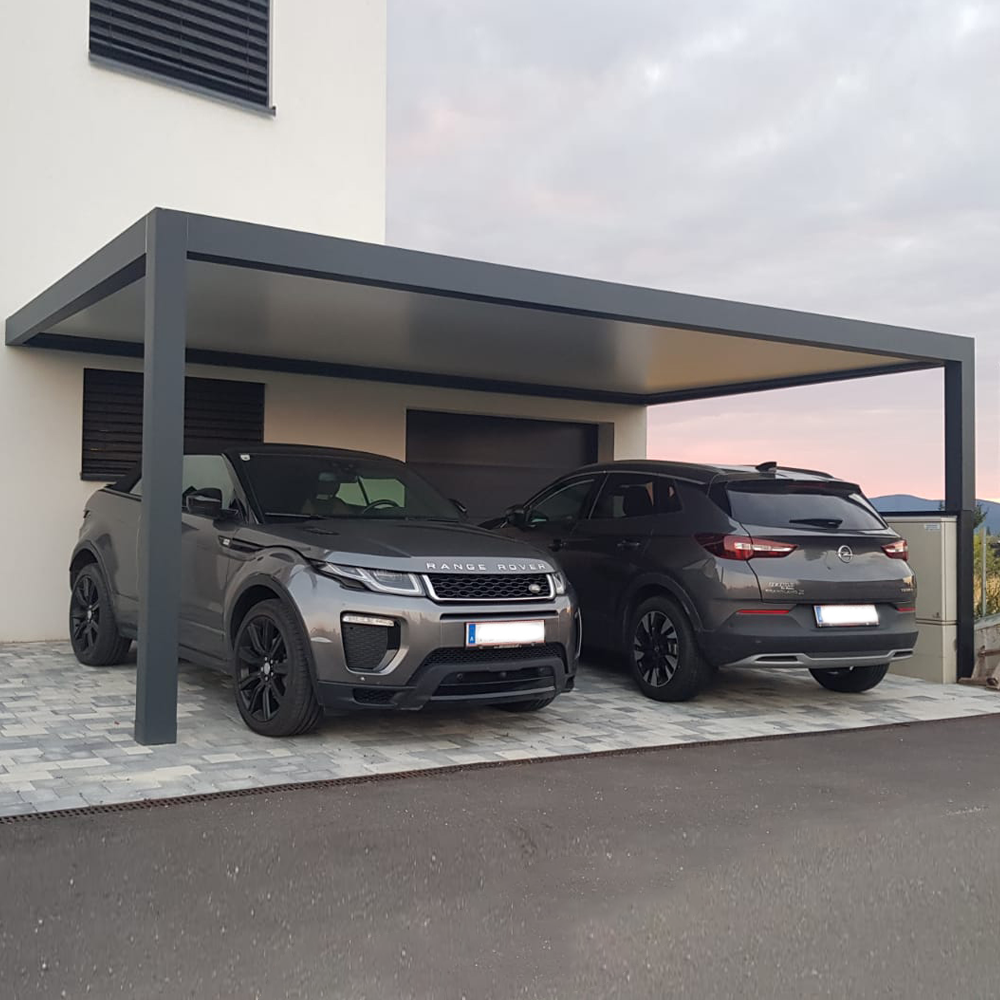 Fast tak for bil i aluminium og sandwichpaneler. Selvbærende takkonstruksjon Fredrikstad er et nytt system som ser mot fremtiden av utendørs dekorasjon med en innovativ og mangefasettert tilnærming, utvide utvalget av alternativer til de menneskene som ønsker at uteområdene deres skal ha en avantgarde og umiskjennelig og moderne stil.