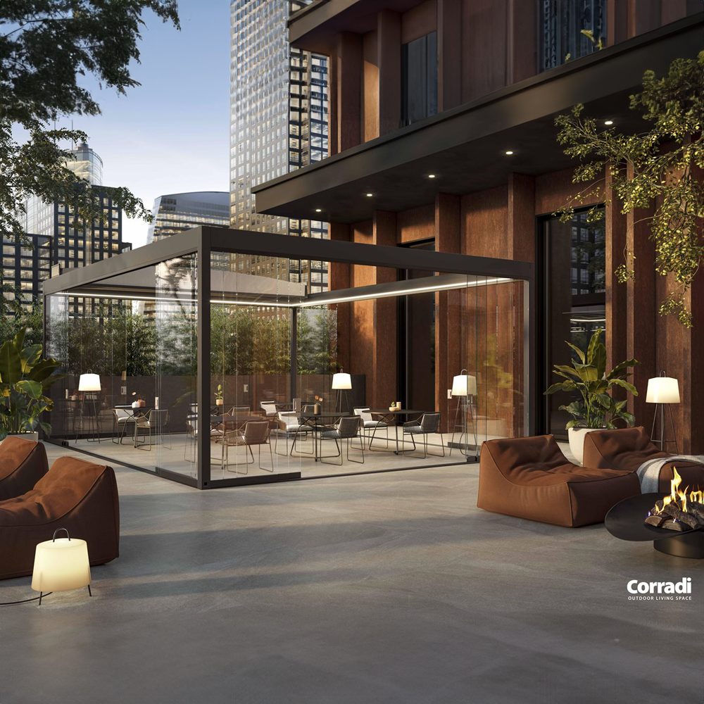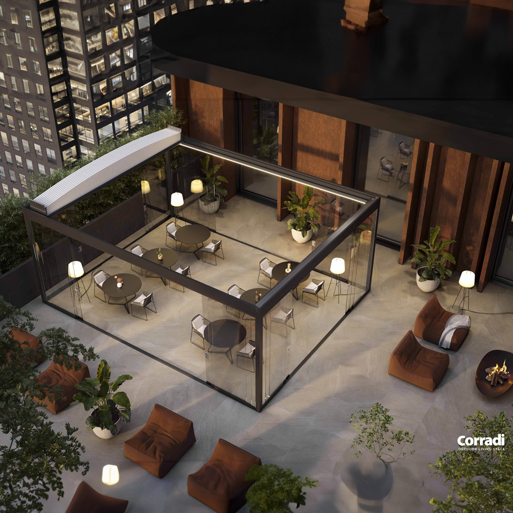 Vi tilbyr ulike løsninger av dukpergolaer med flatt tak, som passer perfekt for offentlige steder som kaféer, restauranter, barer, men de er også designet for privat bruk. Pergolaer med foldeduk er en ideell løsning for steder der det er påkrevd søknad om byggetillatelse, spesielt hvis det kan være utfordrende å få godkjent glasstak eller lamelltak. Takket være den minimalistiske og funksjonelle utformingen, integrerer disse pergolaene seg sømløst i både moderne og tradisjonelle omgivelser.