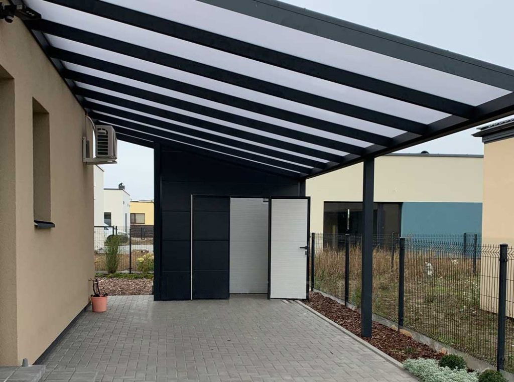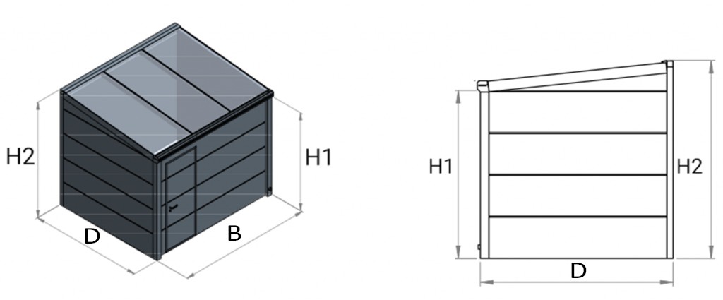Velg redskapsbod med enkelt skråtak (model ALTO-1) eller saltak (modell ALTO-2). Det kommer med en 16 mm UV-beskyttet og høy kvalitets polykarbonatbelegget (standard tilbud). Det lar lyset skinne naturlig inn i redskapsboden.
