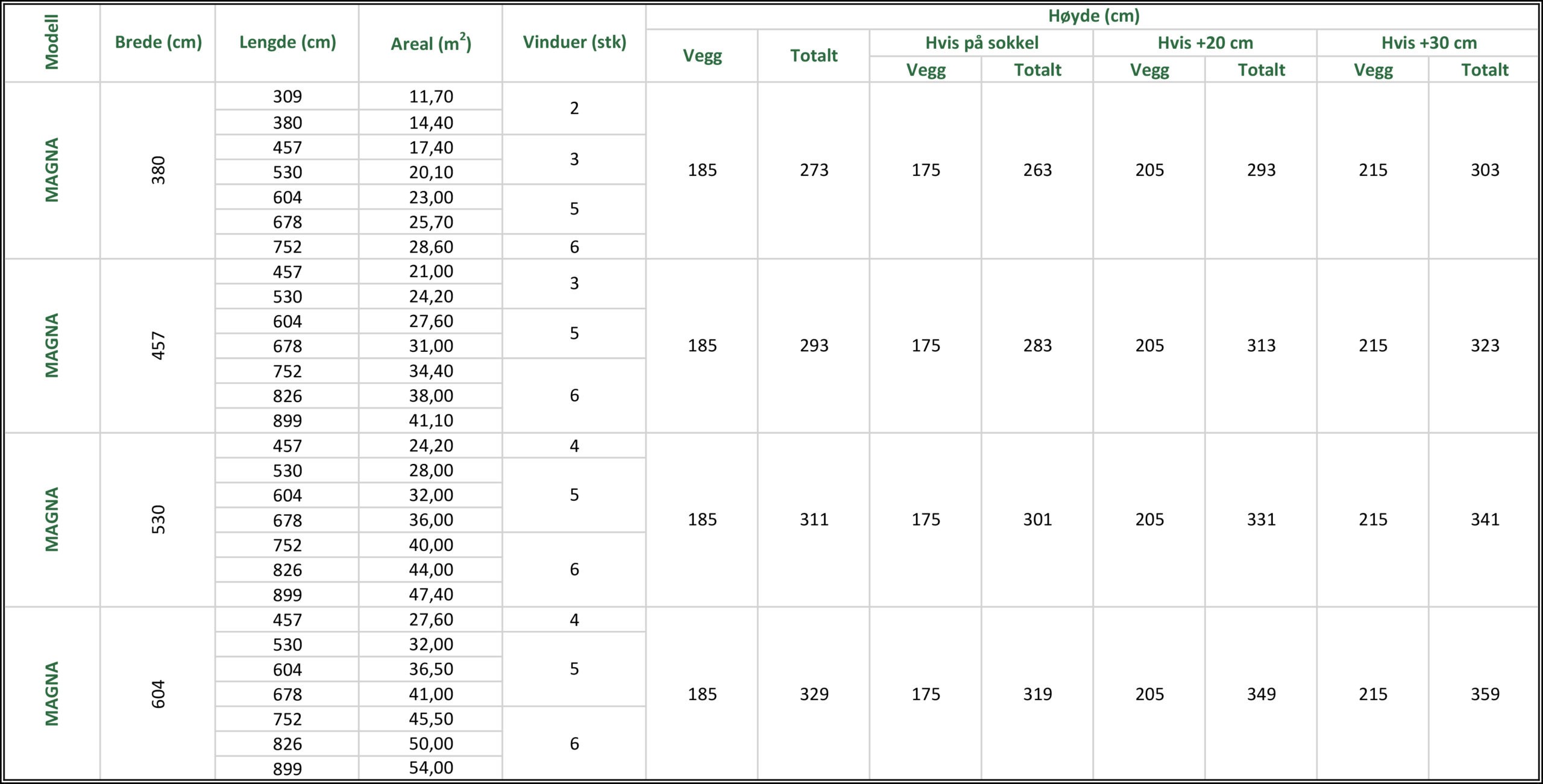 *(Standard bredde for denne modellen er 3,09 eller 3,80 m)