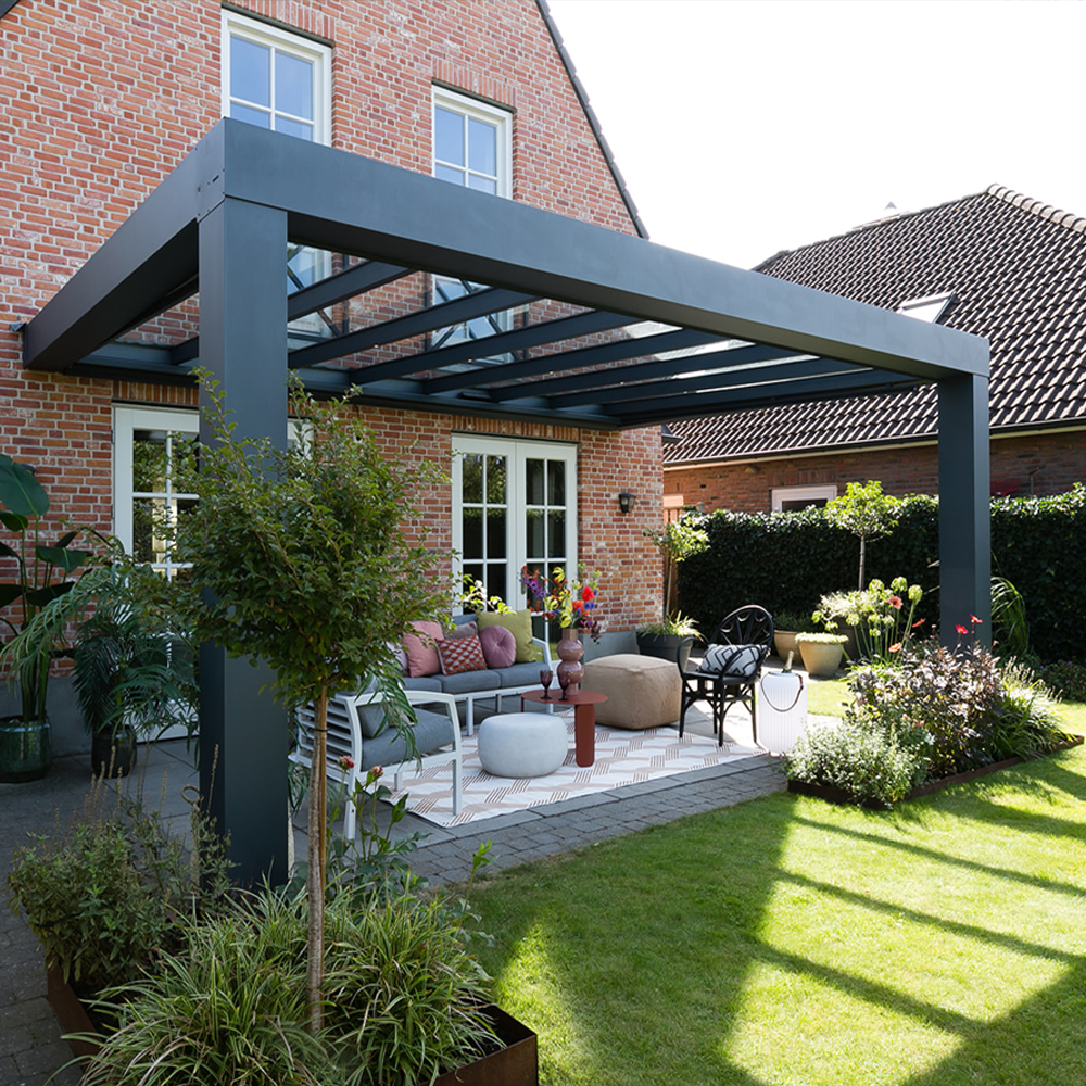 Med en utestue Cube får du mer ut av ditt uteområde. Utestue eller uterom Cube ble eksklusivt utviklet av produsent i EU og skiller seg ut med sin innovative konstruksjon og moderne elementer. De ekstra brede støttene og takrennene gir Cube en robust, så vel som stilfull utstråling. De krystallklare glassene (med en usynlig takhelling) gir rikelig med naturlig lys. Med en forsterket takrenne sørger vi for at selv en overdekning som er opptil syv meter bred, kan stå på bare to stolper. Dette lar deg nyte utsikten uten begrensninger.